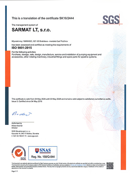 Certificado de representante de ventas contratadas de Jihomoravská Armaturka